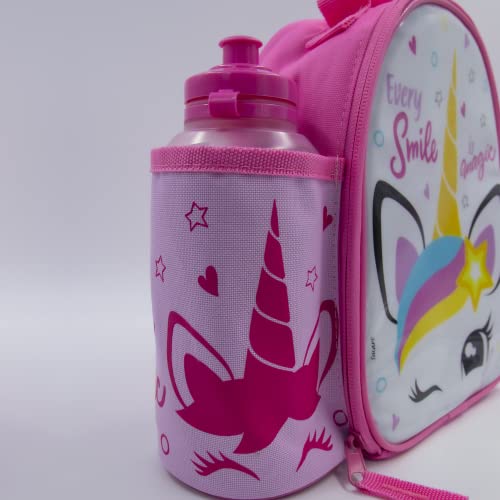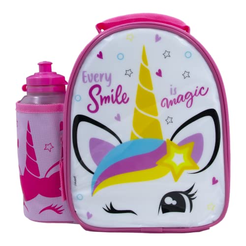 Smart Unicorn Smile Set Lunch Box Bag con Borraccia, Contenitore Alimenti per bambini, Borsa Termica Porta Pranzo Merenda