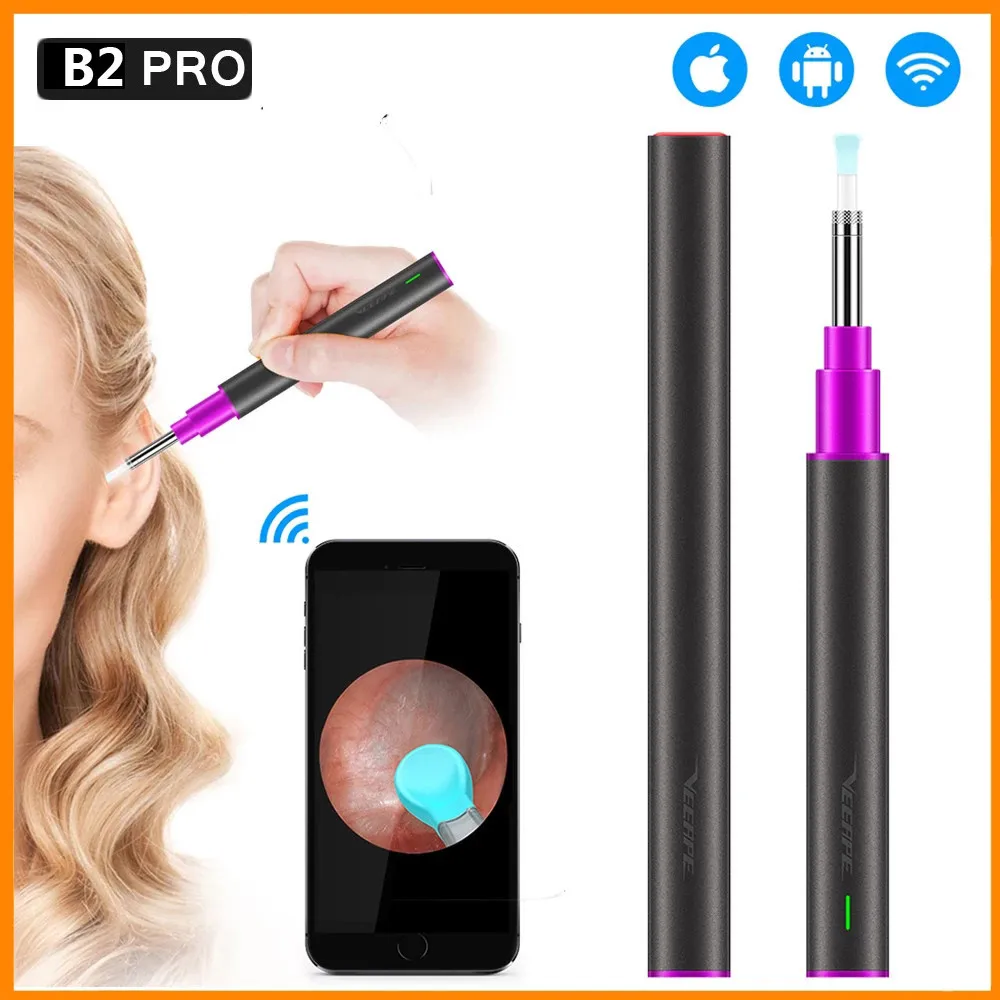 Smart Visual Ear Picker Otoscope B2 Pro Mini Camera Endoscope High Precise Ear wax Cleaning tool with UV Sterilization Light