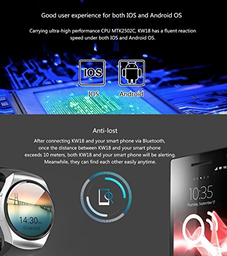 Smart Watch KW18, huiheng Bluetooth Smart orologio da polso per IOS iPhone Android Samsung LG KW18 Smart Watch con telecomando fotocamera supporto frequenza cardiaca sim tf per bussiness uomini donne
