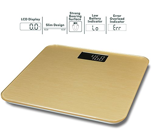 Smart Weigh Bilancia Pesapersone Digitale Bilancia Personale Elettronica Da Bagno Fino A 180kg Con Piattaforma Di Pesatura In Vetro Temperato E Avanzata Tecnologia Step-on, La Bilancia Digitale Per La Pesatura Dispone Di Un Grande Schermo LCD Retroilluminato Facile Da Leggere, Oro