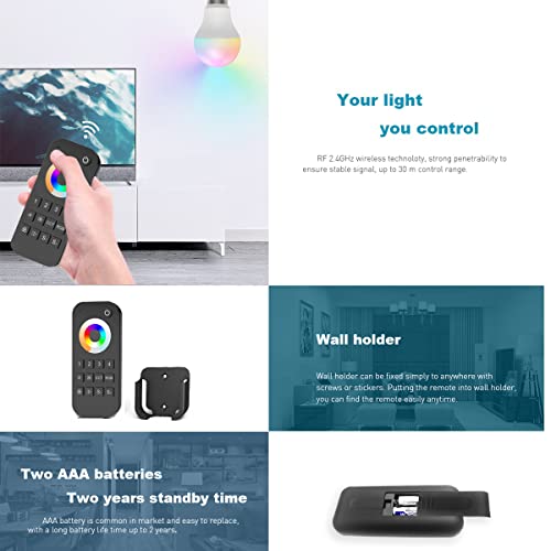 Il telecomando wireless RF 2,4G offre un modo stabile ed efficace per controllare l'illuminazione della tua casa. È possibile regolare la luminosità e la temperatura del colore, cambiare il colore, scegliere la modalità dinamica o la scena. Crea infinite possibilità per i tuoi progetti di illuminazione, molto amichevole per anziani e bambini. Alimentato da 2 batterie AAA (non incluse)