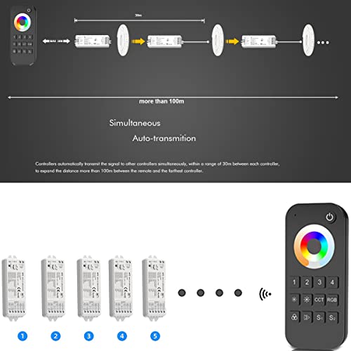 Dimmer touch con telecomando, nessun ritardo della mano, materiale delicato sulla pelle, senza fili 2,4G, distanza telecomando 30 metri, distanza di controllo a cascata tra i controller può raggiungere centinaia di metri