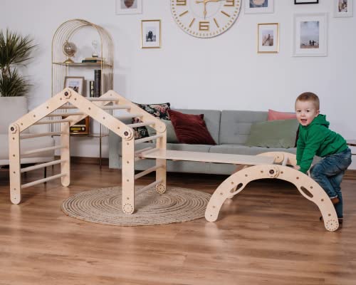 Smart Fox Wood Montessori - Set di telaio per arrampicata in legno, con rampa e arco double face, con rampa e rampa in legno