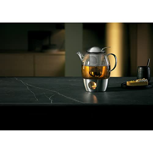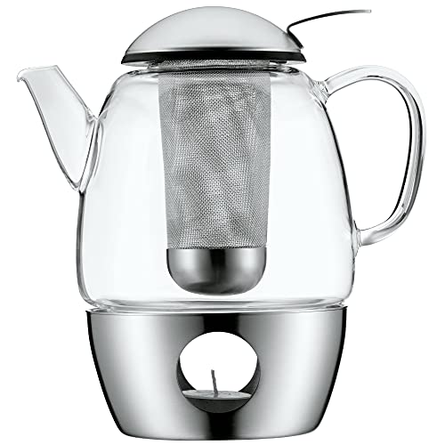 Dotazione: 1 teiera con coperchio e colino, 1 fornelletto^Materiale: acciaio INOX 18/10 Cromargan, vetro WMF soffiato a bocca, opaco, resistente al calore^Designer: Metz & Kindler^Dimensioni: altezza 20 cm, volume 1 l