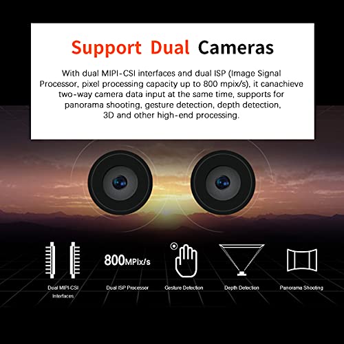 Supporto Dual Cameras: con due interfacce MIPI-CSI e doppio ISP, è possibile ottenere l'immissione dei dati della videocamera bidirezionale ATTUALMENTE! ottimo per riprese panoramiche, rilevazione di profondità di rilevamento di gesti 3D e altre elaborazioni
