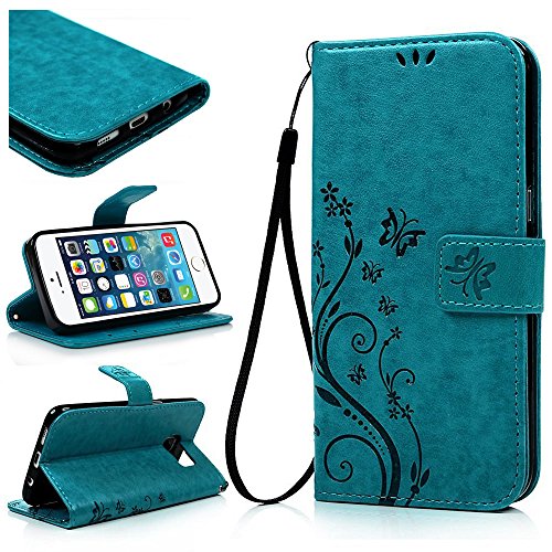 SmartLegend - Custodia in ecopelle per iPhone SE/5S/5, funzione leggio, fessure per carte, chiusura magnetica, con cinturino, motivo farfalla