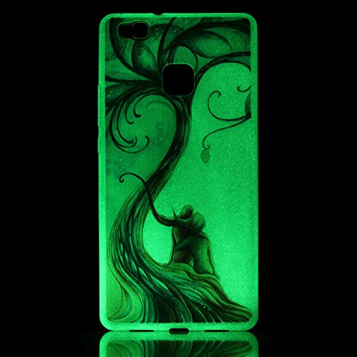 SMARTLEGEND TPU Morbido Cover per Huawei P9 Lite, Ultra Sottile Nottilucenti Luminoso Flessibile Gel Silicone Custodia, Transparente Protettiva Back Copertura Case Disegno Bella con LED Flashing Glow in the Dark - Gli Amanti Degli Alberi