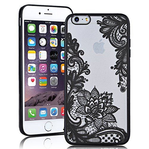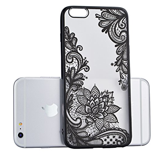 SMARTLEGEND Rigida Custodia per iPhone 6 / 6S (4.7"), Ultra Sottile Trasparente Hard Case Cover con Lato Morbido, Protettiva Anti-Scraches Duro Copertura con Design Fiore Pizzo Pattern - Nero