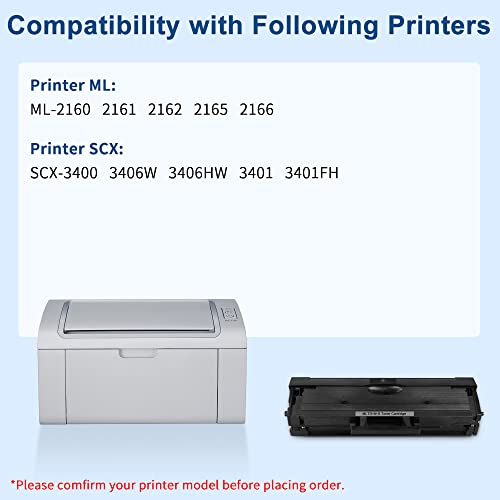 Compatibile con stampanti Samsung Xpress: ML2160 2161 2166W 2162 2164 2165 2165W 2167 2168 2168W ML-1661 1673 1678 1860 1861 SCX-3400 3405 3405F 3405W 3405FW 3407 SCX-3401 3401FH 3406W 3406HW SF-761 761P and 760P.