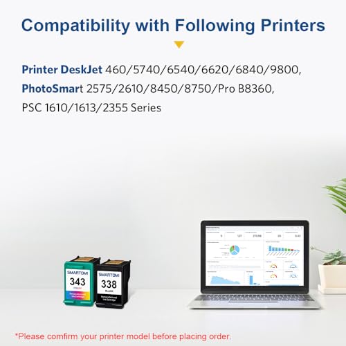 SMARTOMI Remanufactured 338 343 XL Compatibili per 338 343 per DeskJet 460 5740 6540 6620 6840 9800 PhotoSmart 2575 2610 8450 8750 Pro B8360 PSC 1610 1613 2355 Series (1 Nero 1 Tri-colore)