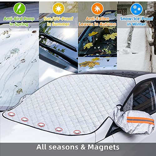 【Adsorbimento Magnetico】Copri Parabrezza Magnetico, magnete neve parabrezza, cinque magneti per tenere il centro del vetro anteriore e due orecchie per fissare al centro della parte anteriore dell'auto per prevenire il furto e fissare il veicolo in modo più sicuro.