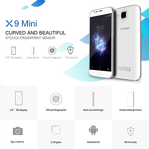 Smartphone Android, DOOGEE X9 MINI Dual SIM Telefonia Mobile - 3G Quad Core Cellulari in Offerta - 5.0 Pollici HD IPS Schermo - 1GB RAM+8GB ROM - 5.0MP Fotocamera e Sensore di Impronte Digitali - Bianco