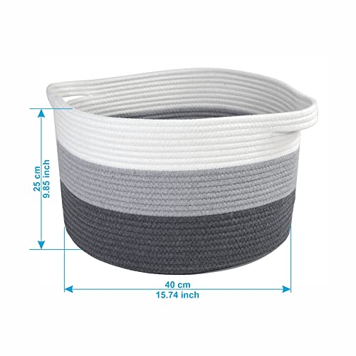 SmartProduct Cestino di Cotone Grande, 40x40x25cm, Intrecciato con Maniglie, Cesta in Corda di Cotone Resistente Portaoggetti per Bagno, Stanza dei Bambini, Lavanderia, Depositare i Giocattoli