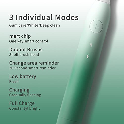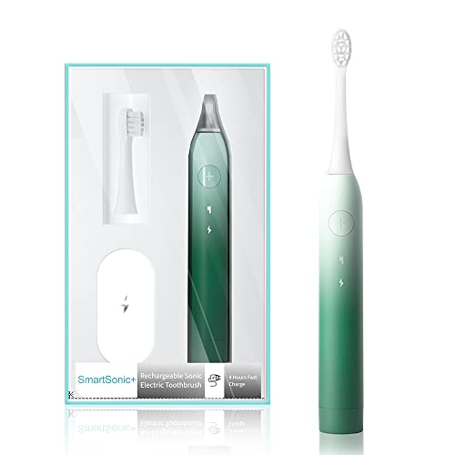SmartSonic+ Spazzolino Elettrico,Spazzolino Elettrico Sonico Spazzolino Denti Spazzolini Sonico con USB Ricaricabile, 3 Modalità, 4 Ore di Ricarica Rapida per 70 Giorni (Verde)