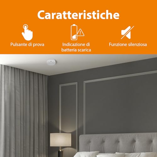 Rilevatore di fumo con batteria integrata con una durata di 10 anni che non richiede sostituzione