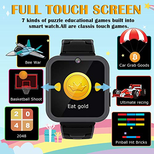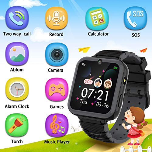 Smartwatch Bambini-HD Touchscreen Orologio Telefono per Ragazzo e Ragazza Con Gioco Musicale Torcia Elettrica Chiamata Sveglia SOS Fotocamera, Orologio Intelligente per Bambino 3-12 Anni Regalo(NERO)