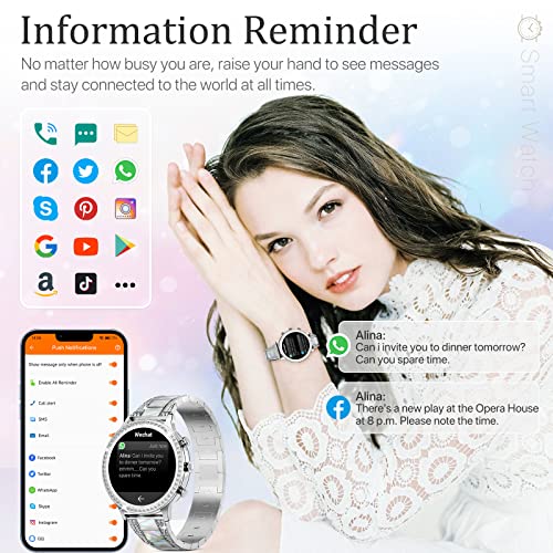 【Assistente Sanitario】: gli smartwatch donna chiamate possono monitorare la frequenza cardiaca in tempo reale, supportare il monitoraggio del sonno, l'ossigeno nel sangue e la pressione sanguigna e prestare sempre attenzione alla salute (i dati di misurazione sono solo di riferimento). È inoltre dotato di una funzione di registrazione del ciclo mestruale femminile per aiutarti a registrare l'ora.