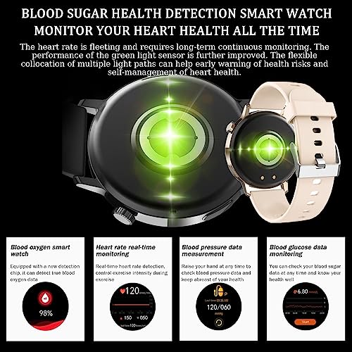 【smartwatch per il rilevamento della glicemia non invasivo per uomo donna】 l'orologio intelligente per il monitoraggio della glicemia può essere abbastanza intelligente da capire il tuo stato di salute in pochi secondi. calcola la frequenza cardiaca, l'ossigeno nel sangue, la pressione sanguigna, la glicemia, il monitoraggio del sonno, i promemoria sedentarietà, i promemoria per bere, i promemoria mestruali delle donne, i piani di gravidanza e altri dati attraverso algoritmi.