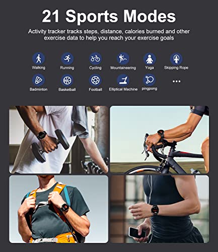 Orologio fitness con 21 modalità sportive: questo smartwatch con chiamata Bluetooth dispone di 21 modalità sportive come camminata, corsa, ciclismo, badminton, basket e yoga. Puoi visualizzare i tuoi record sportivi direttamente sullo smartwatch. Allo stesso tempo, il fitness tracker può anche registrare dati quotidiani come passi, distanza a piedi e calorie consumate, in modo da poter allenarsi in modo più scientifico.