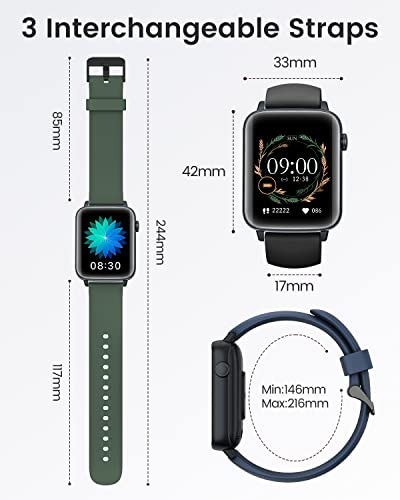 【3 Cinturino, Colori al Polso】L'orologio fitness ha preparato per te 3 cinturini in silicone liquido antibatterico progettati esclusivamente: nero, verde scuro, blu scuro. Il silicone liquido non è solo resistente e durevole, ma anche il materiale è delicato sulla pelle e setoso, smart watch con il nuovo design a sgancio rapido, che si tratti di affari, minimalismo sportivo o vita di tutti i giorni, cambia il tuo stile in qualsiasi momento, rendi il tuo mix più vario.
