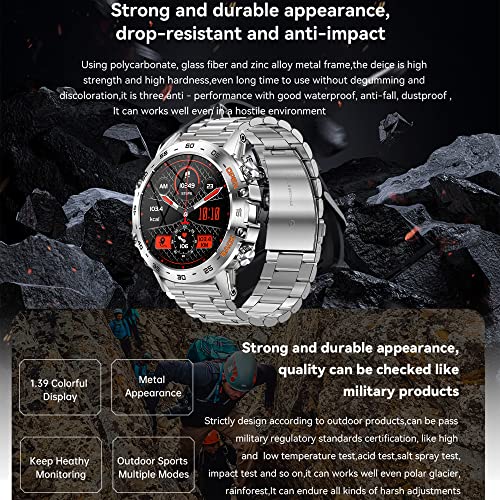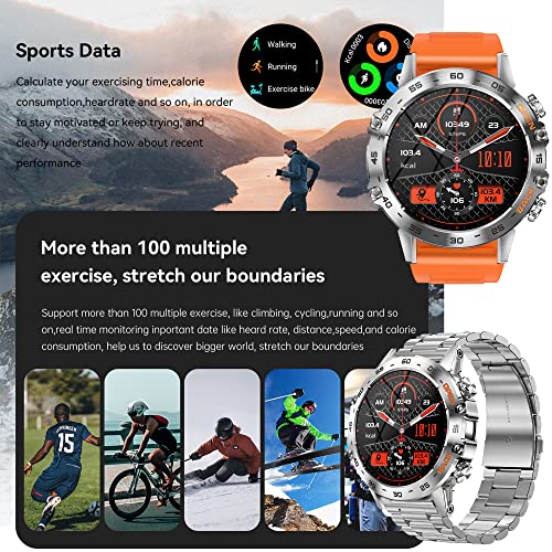 【Chiamata Bluetooth 5.1, più Potente】 Lo smartwatch uomo chiamate supporta lo standard Bluetooth 5.1 dual-mode BT/BLE, in grado di realizzare una trasmissione dati Bluetooth ad altissima velocità, Più forte anti-interferenza e stabilità. Smart watch con altoparlanti stereo HiFi a 360° e microfono avanzato con cancellazione del rumore ENC. Lo smartwatch ha un cinturino in acciaio, cinturino in pelle e cinturino in silicone per soddisfare tutte le vostre esigenze in diverse occasioni.