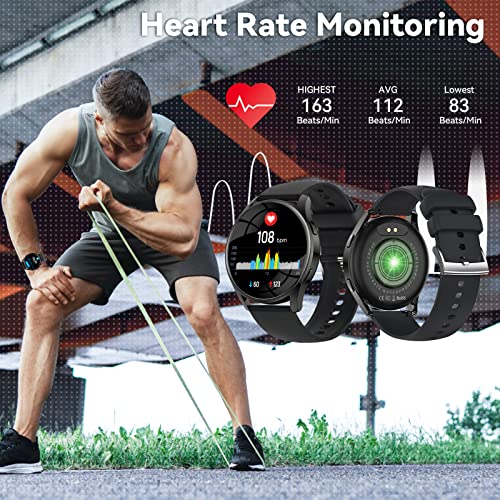 Smartwatch Uomo, Fitness Tracker full touch screen con cardiofrequenzimetro, monitoraggio del sonno contapassi impermeabile, attività con cronometro, Activity Tracker per Android iOS (Nero)