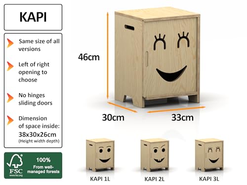 Smartwood KAPI 3L comodino mobili in legno per camerette per ragazzi e ragazze - scaffale per bambini elegante e funzionale - libreria per bambini, legno naturale, apertura a sinistra