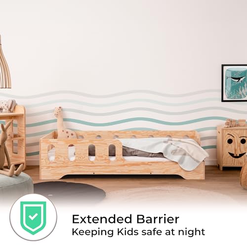 Smartwood Letto bambini 100 x 180 TILA 1P - letto montessori bambini con ringhiera - diverse opzioni di aspetto - lettino bambino singolo 180x100 - legno naturale