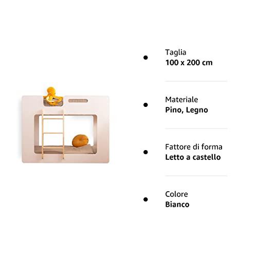 SMARTWOOD MIMI L Letto a Castello - Scaletta sinistra, diverse dimensioni e colori, Natural ECO (Bianco 100 x 200 cm)