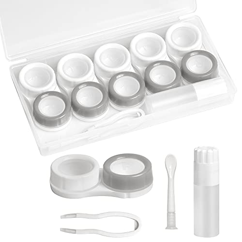 Smatime 5 Pzi Scatola di Lenti a Contatto Custodia per Lenti a Contatto da Viaggio Astuccio per Lenti a Contatto Porta Lenti a Contatto Contenitore con Cappucci L e R, Pinzette, Bastoncini, Grigio