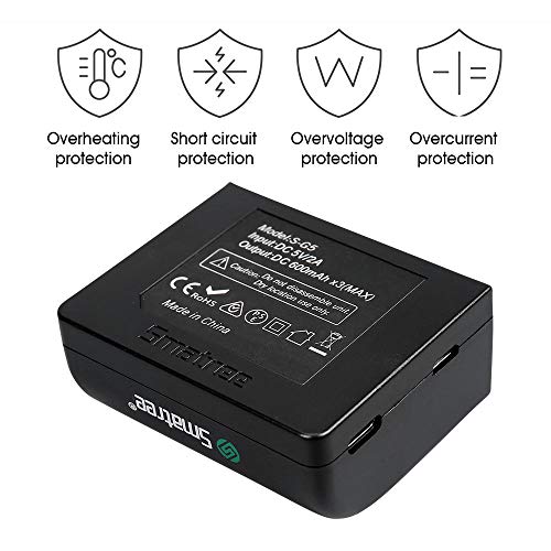 Smatree Caricabatterie a 3 canali per Gopro Hero 2018 / Gopro Hero 8 Black/Hero 7 Black/Hero 6 Black/Hero 5 Black (Non Adatto per Hero3)