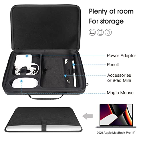 PROTEZIONE ECCELLENTE: Il materiale EVA esterno rigido protegge il tuo Macbook e gli accessori da urti e collisioni, mentre la tasca interna e lo scomparto separato li proteggono dai graffi. Realizzato in materiale EVA ad alta densità per una protezione più duratura e a lungo termine.
