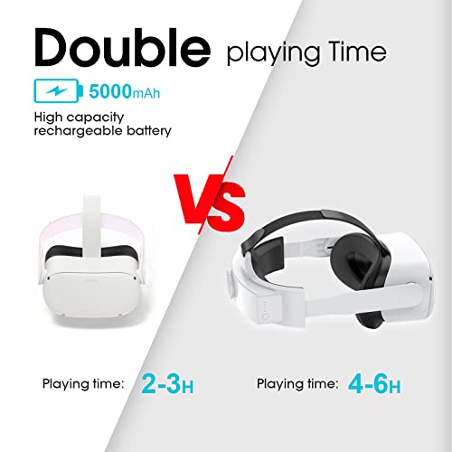 Smatree Elite Strap con batteria da 5000 mAh compatibile per Quest 2,Raddoppia il tempo di gioco, con cuscino per cinturino VR rimovibile per un maggiore comfort
