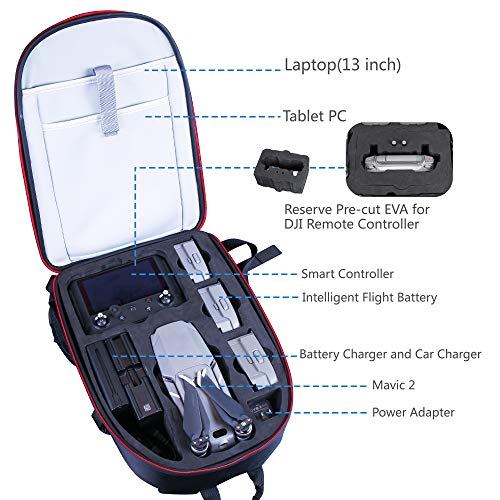 Con schiuma EVA su misura per Mavic 2 Pro / 2 Zoom, può contenere: 1x drone DJI mavic 2 pro / 2 zoom, 1x DJI Smart Controller o telecomando, 3 batterie di volo intelligenti, 1 × caricabatterie e caricatore per auto, 1x alimentatore e tasca speciale progettata per 1x Tablet PC, 1x laptop 13 ".