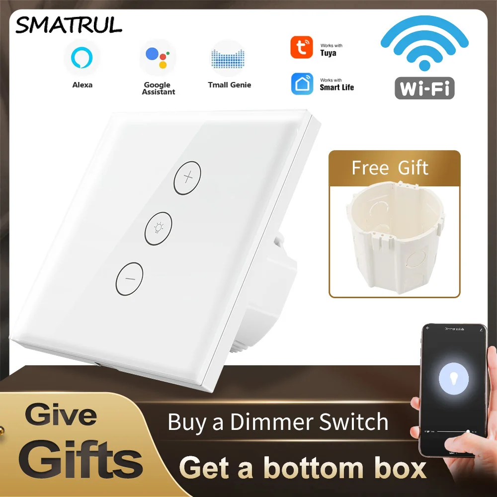 SMATRUL Smart Wireless Touch WiFi Led Dimmer Switch Light Dimming Wall Control Remote On Off EU 220V Tuya Alexa Google Home