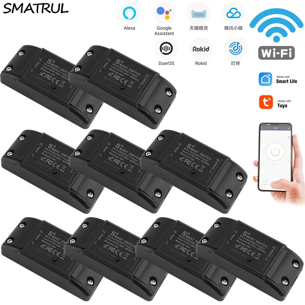 SMATRUL Tuya Light WiFi Switch Smart Life APP Voice Relay Controller Timer Module Google Home Alexa Wall 110V 220V 10A