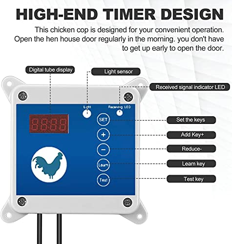 SMAUTOP Porta automatica per pollaio, apertura laterale, timer e sensore di luce regolabile, antipioggia per esterni con due telecomandi
