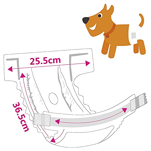 Confezione da 12 pannolini usa e getta per cani femmina XS 25,5 x 36,5 cm.