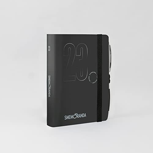 Smemoranda - AGENDA Giornaliera 12 Mesi, Gennaio - Dicembre 2023 - Copertina Morbida, Fogli a Quadretti - Formato Small 9,8x14,3cm - Penna Inclusa - Colore Nero