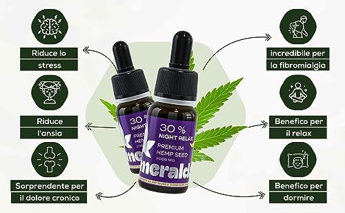SMERALDA Olio Autentico al 30% Night Relax Puro al 100% - Made in Italy da agricoltura Biologica - Oil 10 ml 3000mg - Olio 100% naturale con pratico Conta Gocce