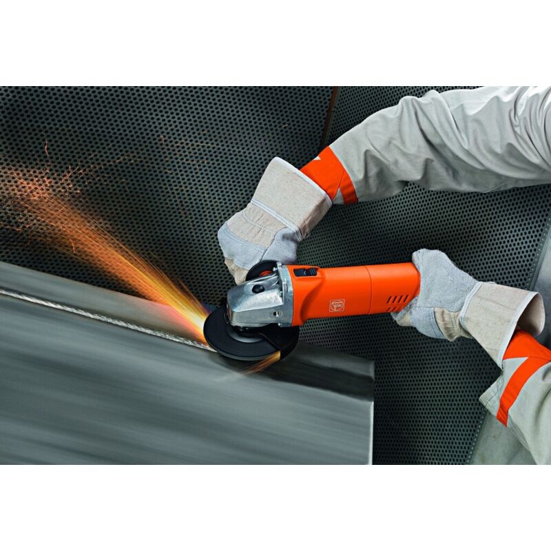 La smerigliatrice angolare WSG 17-125 P di Fein è compatta e maneggevole ed assicura un'elevata riserva di potenza estremamente utile per tutte quelle operazioni di taglio e sgrossatura. Caratteristiche: Maggiore durata dei carboncini e maggior asportazione rispetto ad una smerigliatrice dello stesso tipo. Funzione Powertronic che garantisce una riserva di potenza e numero di giri particolarmente costante sotto carico Ampia protezione dell'utilizzatore grazie al KickBack Stop (dispositivo di blocco della riaccensione) Testa ad ingranaggi in metallo pieno ruotabile a passi 90° Cavo per corrente industriale H07 con lunghezza 4 metri. In dotazione: cuffia di protezione, coppia di flange, impugnatura antivibrante e chiave. Potenza nominale assorbita: 1700 W Potenza resa: 1000 W N° giri a vuoto: 11000 1/min Cavo con spina: 4 mt. Filetto albero portautensile: M 14 Ø disco abrasivo: 125 mm Ø disco elastico: 125 mm Peso: 2,4 kg