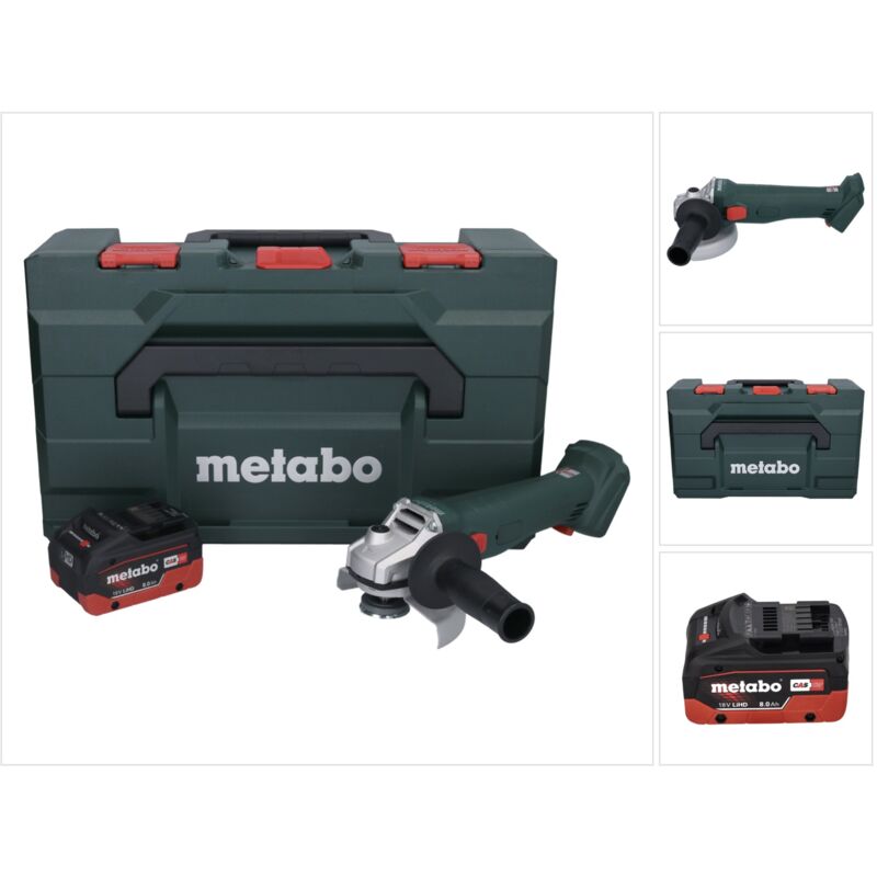 Contenuto della consegna: - 1x Smerigliatrice angolare a batteria Metabo W 18 L 9-125 - 1x coperchio di protezione - 1x flangia di montaggio - 1x dado a due fori - 1x impugnatura supplementare - 1x chiave a due fori - 1x batteria Metabo LiHD 18V 8,0 Ah Li-Ion - 1x Metabo metaBOX 165 L - senza caricabatterie Descrizione del prodotto: La robusta smerigliatrice angolare a batteria CAS, con il suo potente motore e il design sottile, è il compagno ideale per tutti i lavori più impegnativi. Lo spegnimento elettronico di sicurezza riduce il rischio di inceppamento del disco, garantendo un elevato livello di protezione dell'utente. Un sistema di protezione da sovraccarico protegge il motore dal surriscaldamento e, grazie al soft start elettronico, la smerigliatrice angolare si avvia senza problemi. La protezione antiriavvio impedisce l'avvio involontario dopo la sostituzione della batteria. Questo prodotto è compatibile con tutti i pacchi batteria e i caricabatterie da 18 V di CAS. La