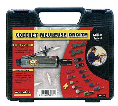 Cofanetto smerigliatrice, contiene: 1 smerigliatrice destra, 10 molle, 2 mandrini di diametro 3 e 6 mm, 2 chiavi di serraggio/blocco, 2 inserti rapidi.