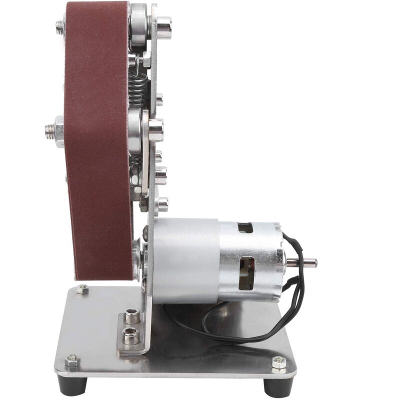 Lineamenti: 1. Doppi cuscinetti incorporati, antiscivolo e antipolvere. La base è stabile, resistente e può essere posizionata su un tavolo per risparmiare manodopera. 2. Il design del quadrante eccentrico può regolare la perpendicolarità della cintura. 3. La ruota di regolazione della cinghia ha una struttura a molla, che può regolare automaticamente la tensione. 4. Molto facile da installare e utilizzare, molto adatto per il fai-da-te domestico. Dimensioni compatte, facile da trasportare, basso rumore. 5. 9000 giri / min del motore, affidabile e di qualità, modello di motore 775, con tempi di manutenzione lunghi. Specificazione: Condizione: 100% nuovo di zecca Tipo di articolo: levigatrice a nastro elettrica Materiale: acciaio Tensione: 110-240 V Velocità del motore: 9000 giri/min Modello motore: 775 Nastro di sabbia Modello: ca. 30 x 330 mm/1,2 x 13 pollici Adattatore di alimentazione: 12-24 V (sette velocità) Velocità di uscita: 4500-9000 giri/min Angolo di regolazione del piano