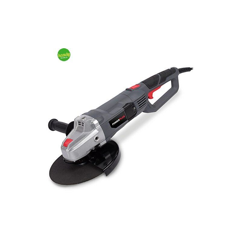 Smerigliatrice, dalla gamma di elettroutensili da lavoro di POWERPLUS. Smerigliatrice angolare alimentata a corrente con motore a spazzole da 2200W. Carcassa interamente realizzata in plastica rigida e metallo, con impugnatura morbida è anche girevole per una migliore presa. Inoltre, la maniglia ausiliaria può essere impostata in tre posizioni: superiore, sinistra e destra. Queste caratteristiche garantiscono un grande comfort per l'utente e forniscono un controllo eccellente in tutti i possibili orientamenti della smerigliatrice. L'avviamento graduale consente al motore di avviarsi lentamente e di raggiungere la massima velocità. Ciò aumenta drasticamente la sicurezza e il controllo. Il POWE20030 con blocco del mandrino e protezione di sicurezza può contenere un disco Ø230 mm.