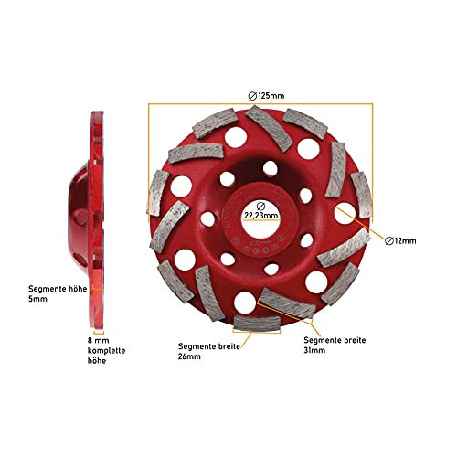 Smerigliatrice a tazza diamantata Twin Speed, diametro 125 mm, foro 22,22 mm, per calcestruzzo, pietra naturale, granito, pavimento in cemento, muratura universale