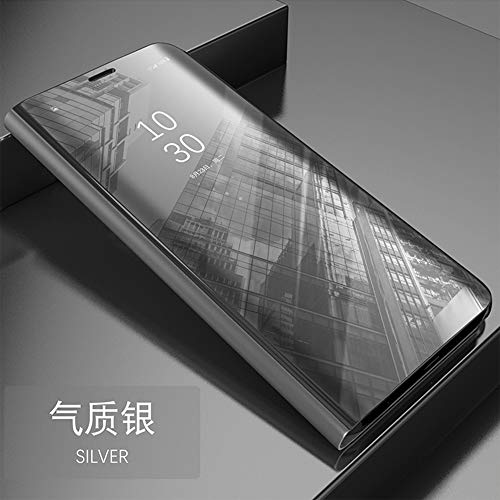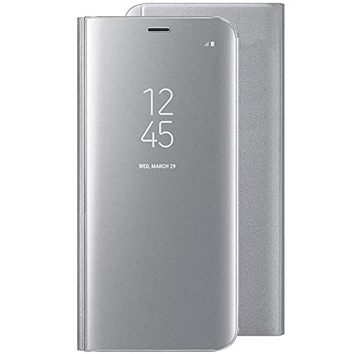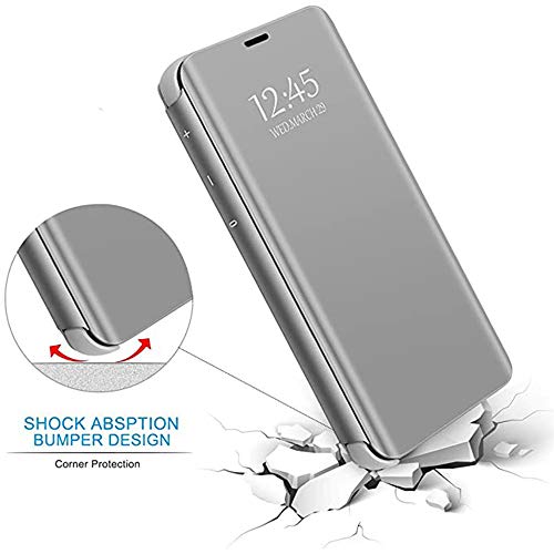 Smfu Cover Compatible Samsung Galaxy A50/A30S/A50S Custodia per telefono a specchio Mirror Clear View Flip Traslucido Custodia Staffa pieghevole -Argento Con pellicola in vetro temperato 2 Pezzi