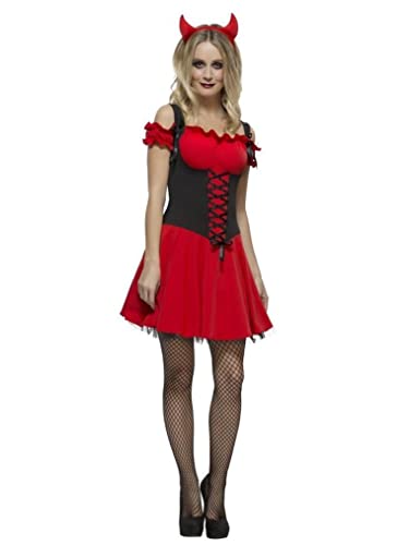 SMIFFYS Smiffy's 30886L - Febbre Wicked Devil Costume con Dress Attached Sottogonna e Le Corna, Rosso, L
