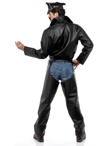 SMIFFYS Smiffy's 36239L - Village People Biker Costume Nero con Cappello Superiore Chaps con Catena e Cablaggi, L