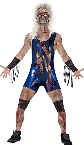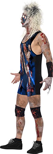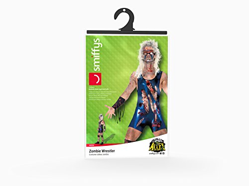 SMIFFYS Smiffy's 44358M - Zombie Lottatore Costume Blu con La Tuta di Lattice Maschera Leg & Arm Polsini, M